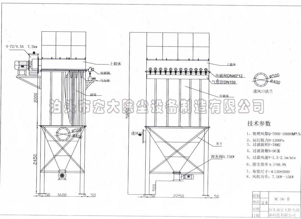 MC布袋除塵器|MC脈沖除塵器|MC脈沖袋式除塵器-MC-Ⅱ脈沖布袋除塵器技術性能-宏大除塵設備