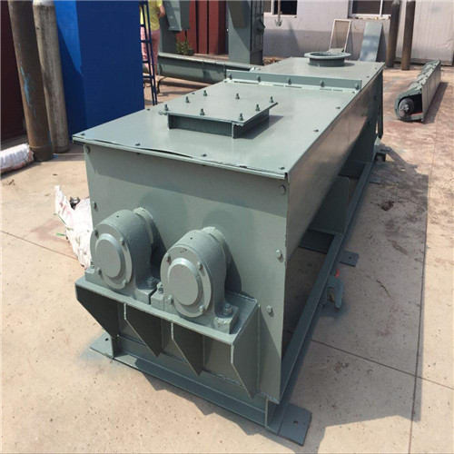 在雙軸粉塵加濕混合器的作用下進行萃取、傳質或化學反應時,傳質速率和反應時間的政策是傳質速率和反應時間。此時,雙軸加濕混合器提高了液相接觸面積、傳質系數和反應速度,液相疏松、細化。在制備懸浮顆粒和Ru溶液時,攪拌使液滴細化,增加了相對接觸面積。特別是不相容材料,通過雙軸加濕混合器,兩者_混合,這也增強了設備的攪拌功能,再加上它有兩個混合軸,效益很高。本發明主要用于火力發電廠、鋼廠等部位卸灰斗下部的水噴霧濕法混合輸送粉料,以抑   制卸荷過程中粉塵造成的粉塵污染,滿足環保部分的排放要求。
